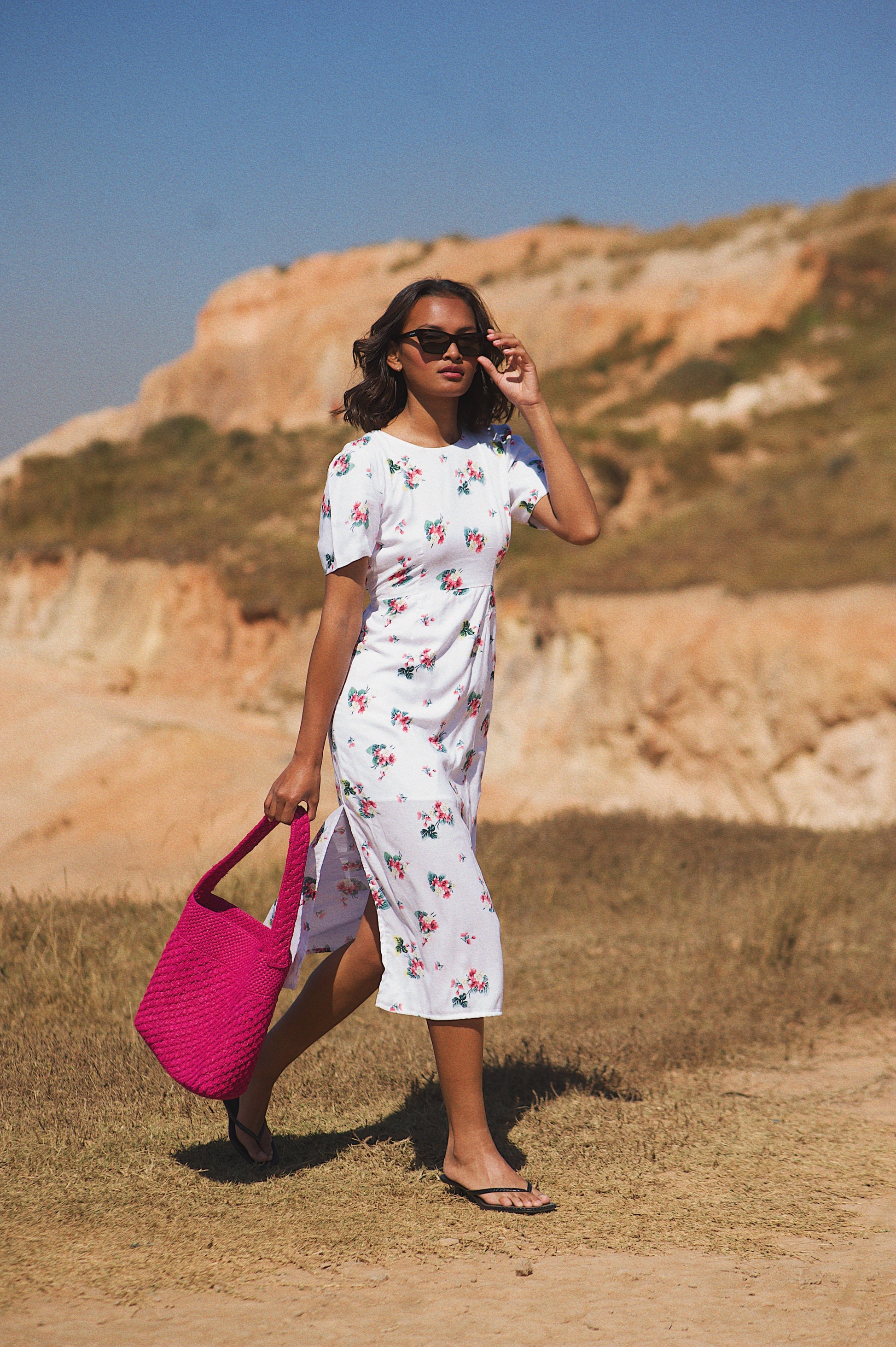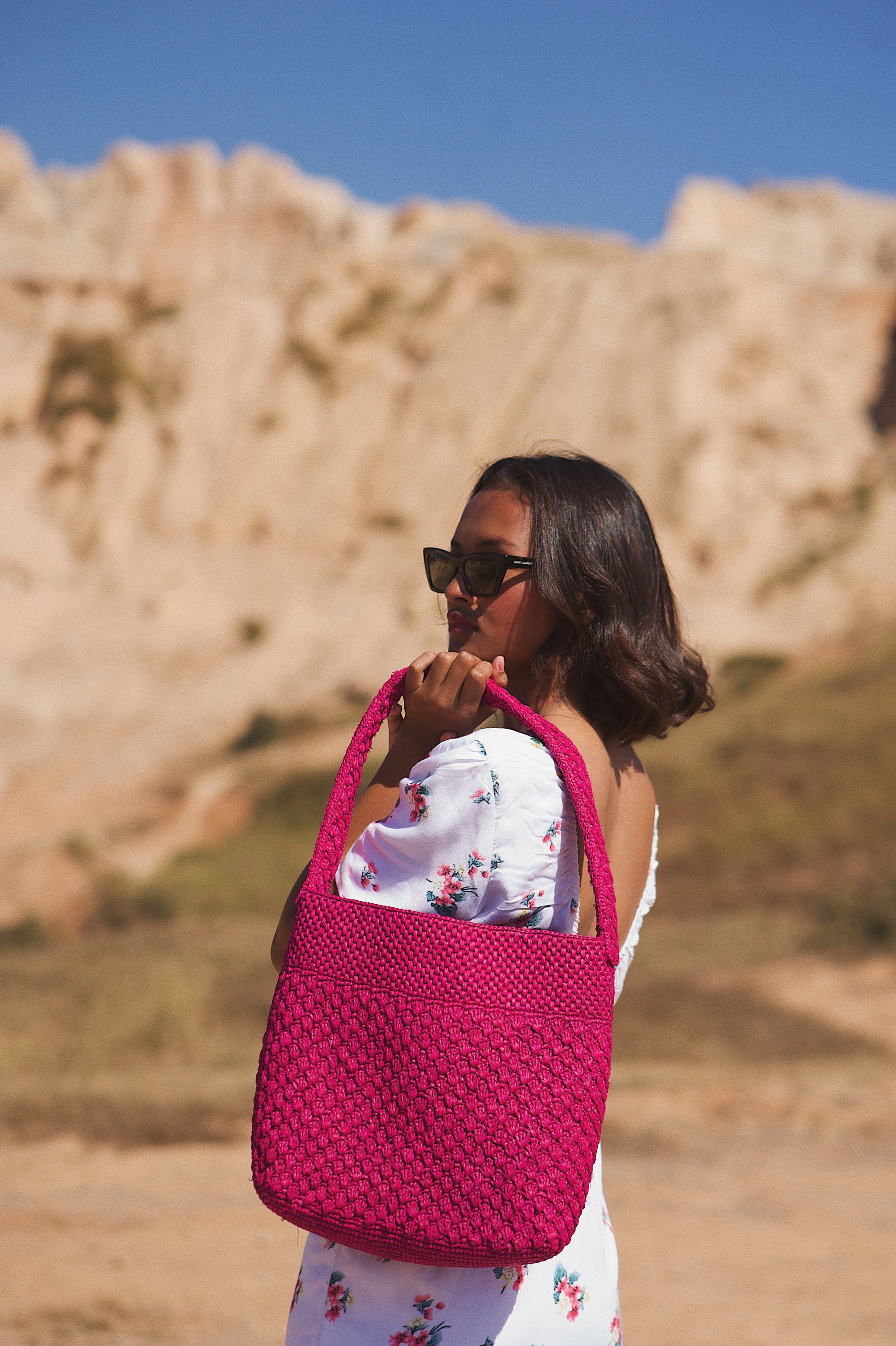 - Panier rose fuchsia en raphia