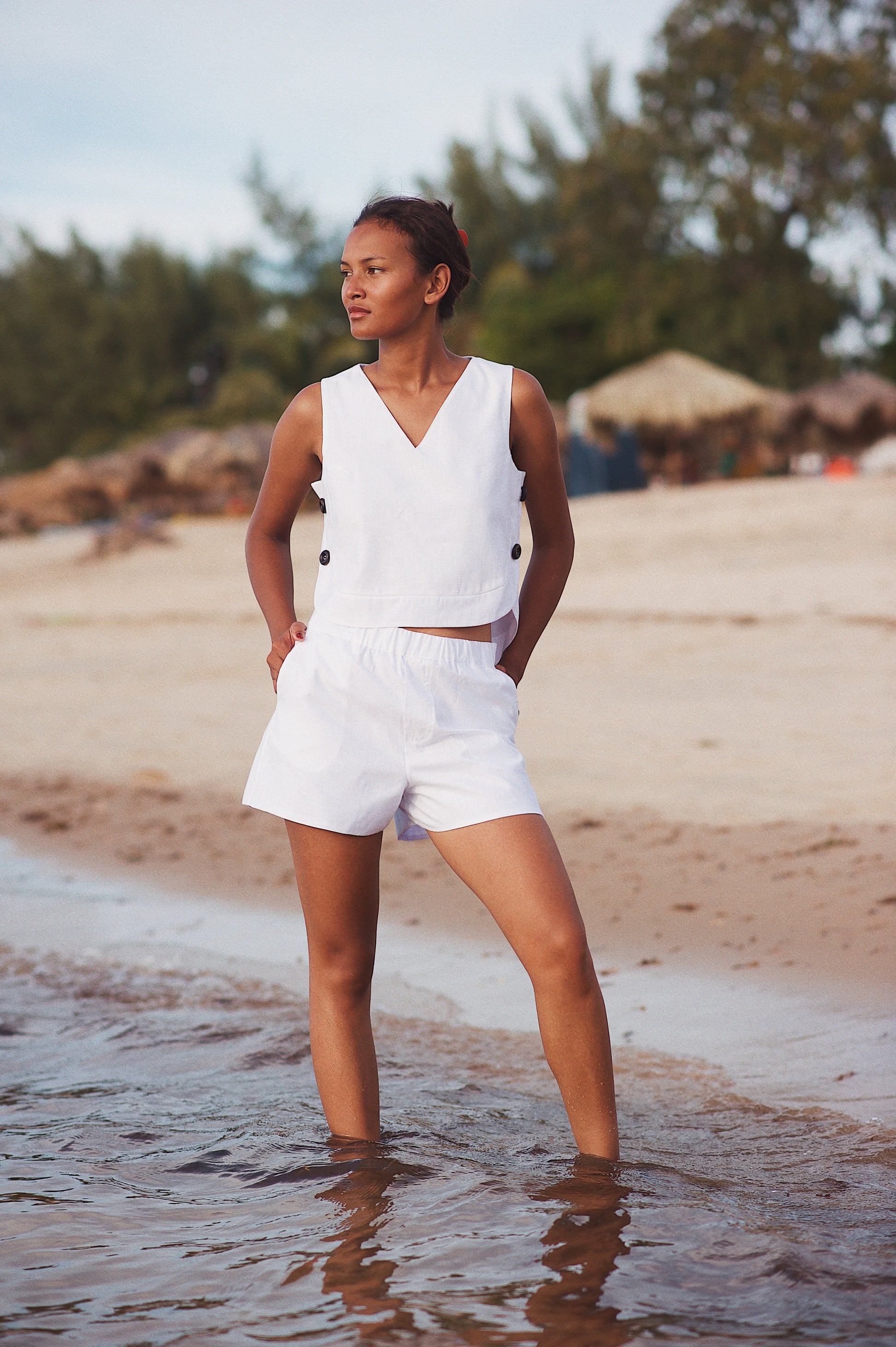 - Short en lin blanc