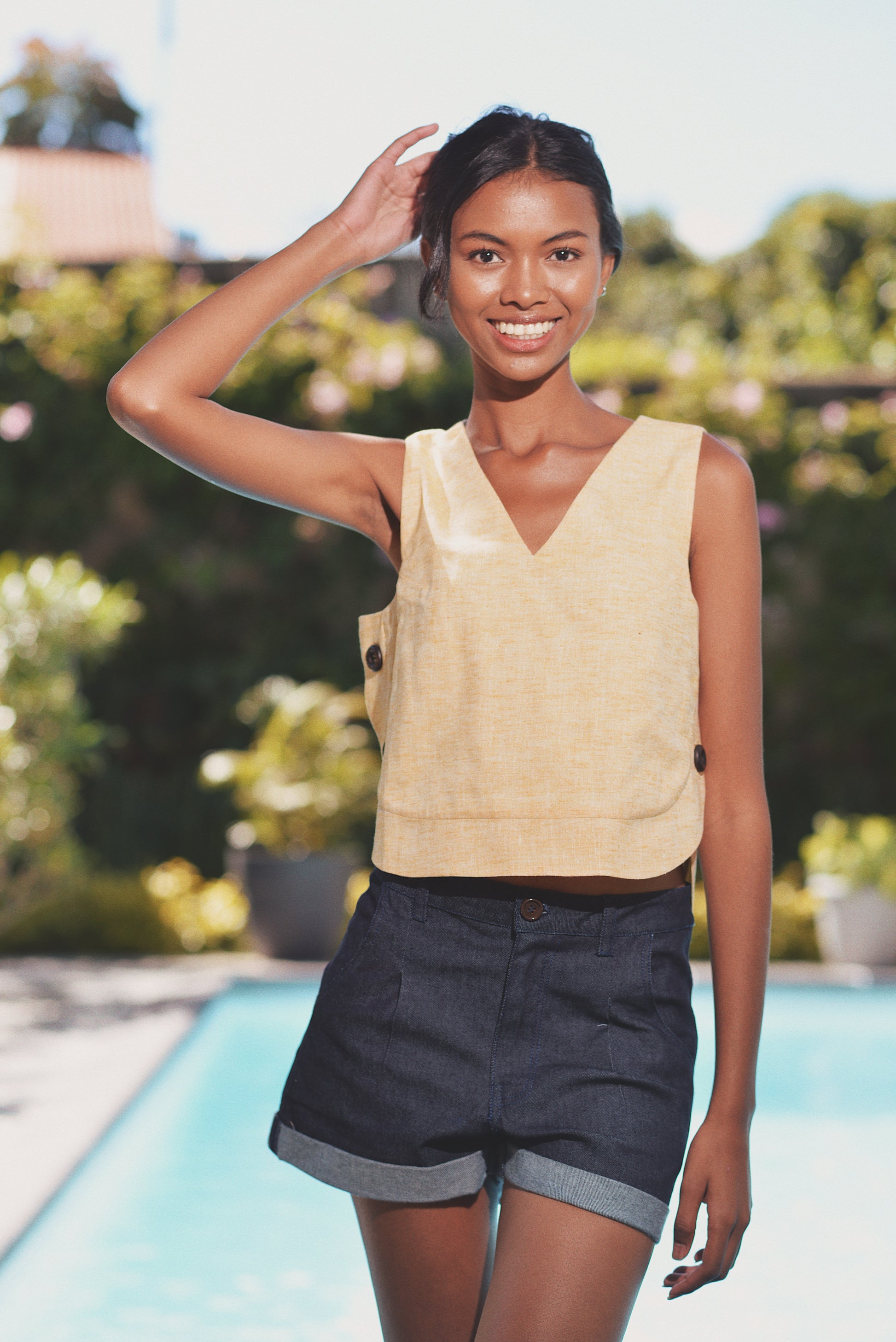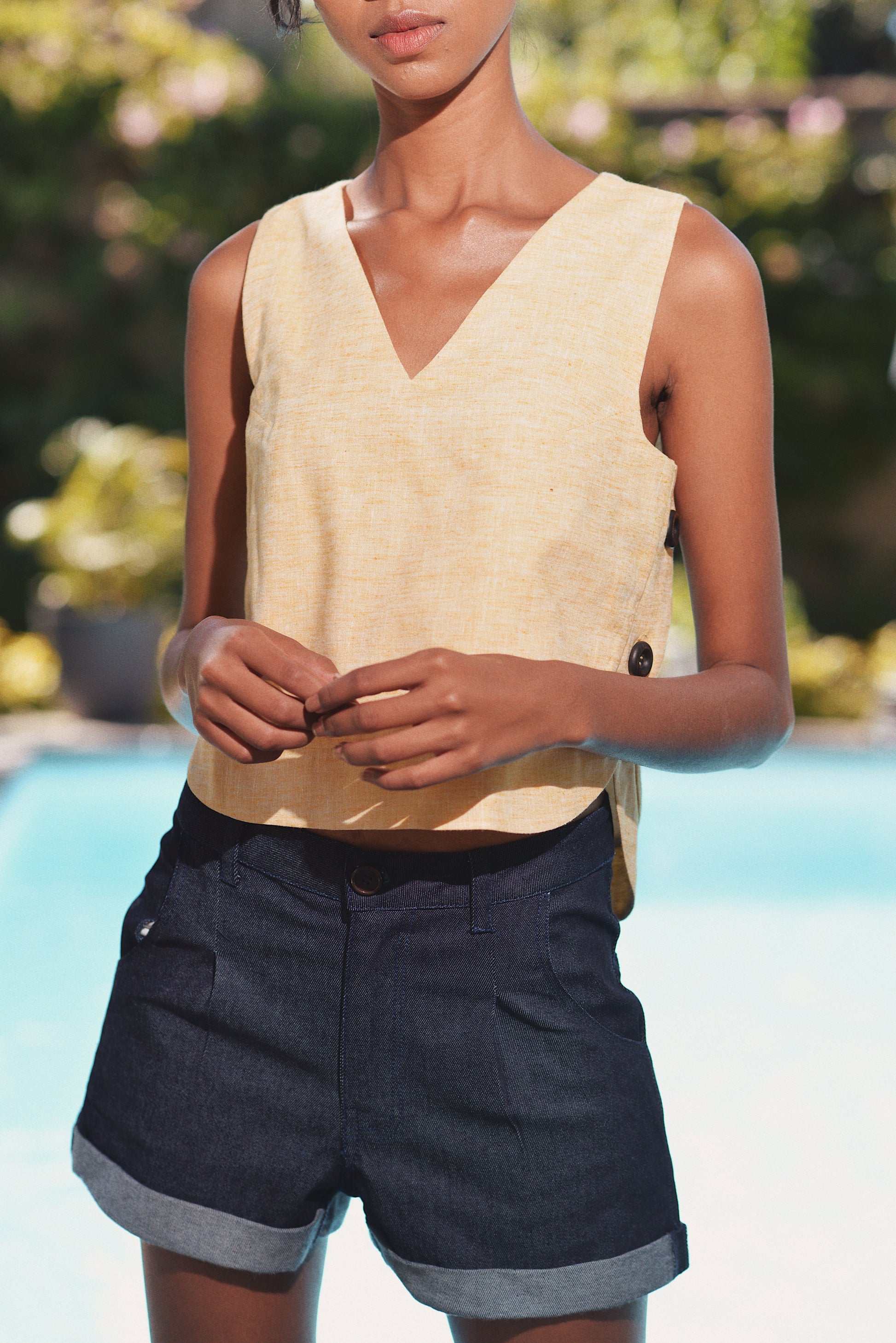 - Top jaune en lin